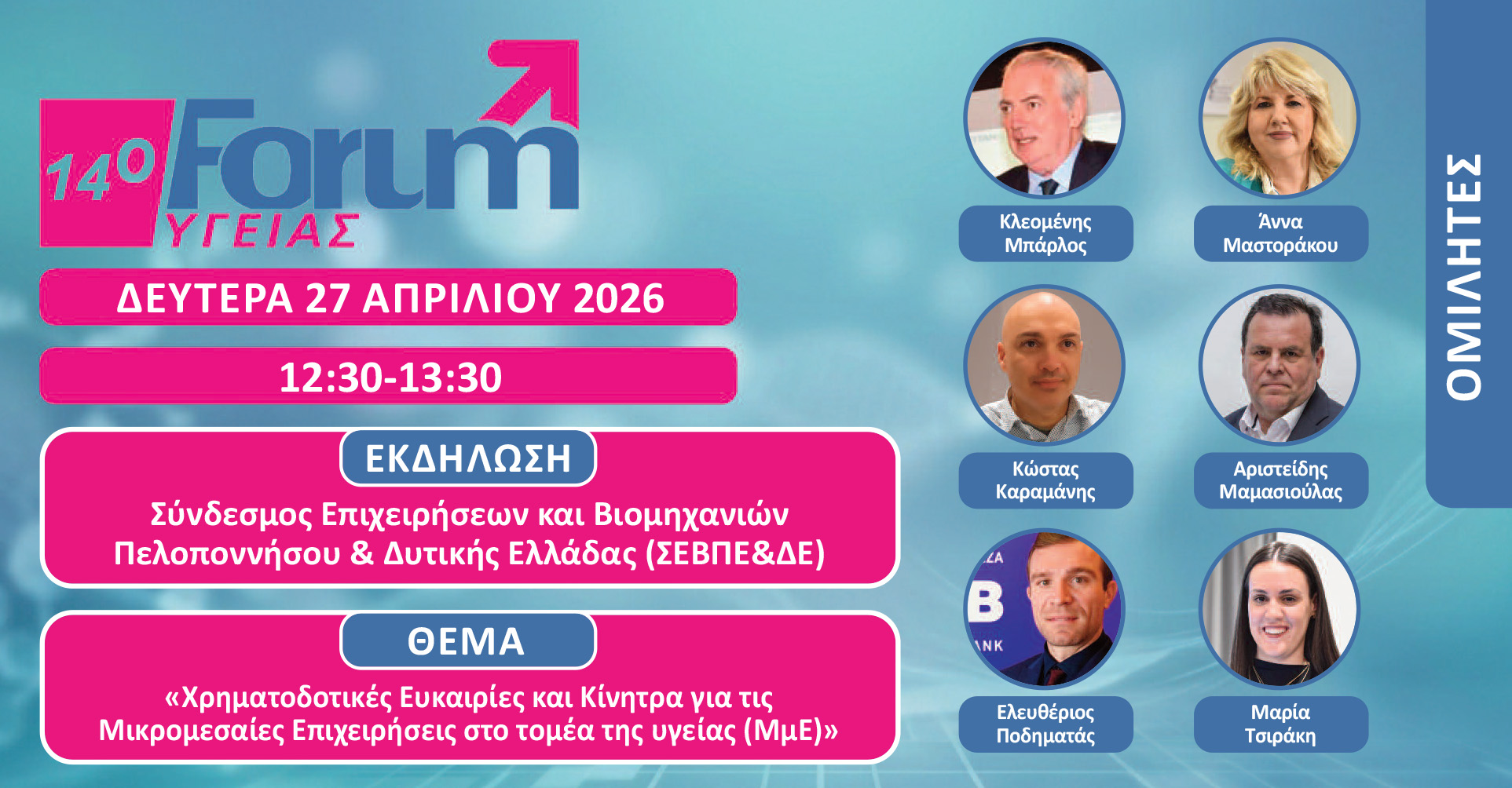 ΣΕΒΠΕ&ΔΕ – Θεματική Εκδήλωση στο 14ο Forum Υγείας «Χρηματοδοτικές Ευκαιρίες και Κίνητρα για τις Μικρομεσαίες Επιχειρήσεις στο τομέα της υγείας (ΜμΕ)»